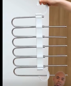 Es un set de perchas organizadoras para pantalones y otras prendas, diseñado para ahorrar espacio en el clóset. Cada percha…